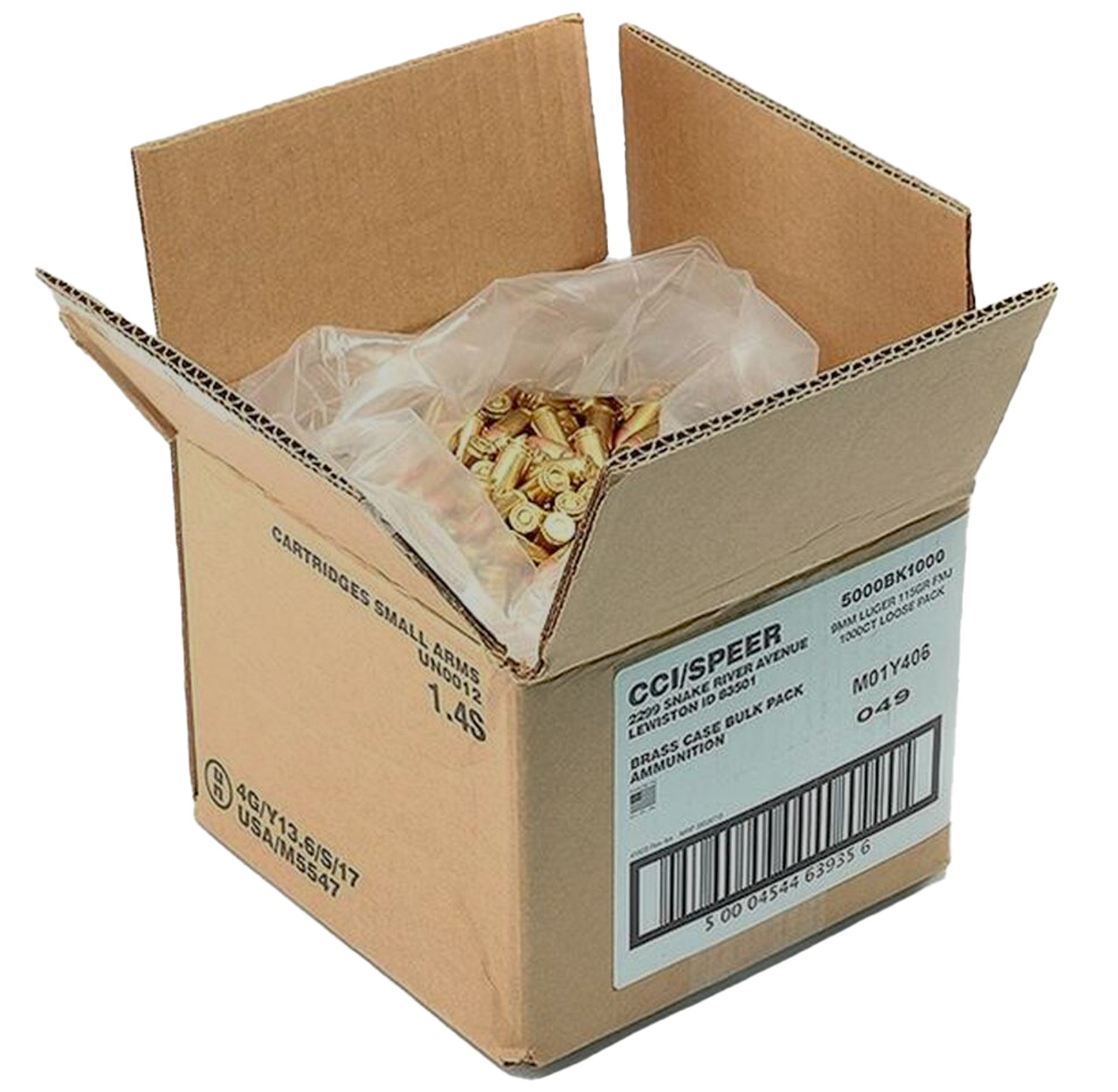 CCI Blazer Brass 9mm, 115gr, FMJ, 1000rd Loose Pack