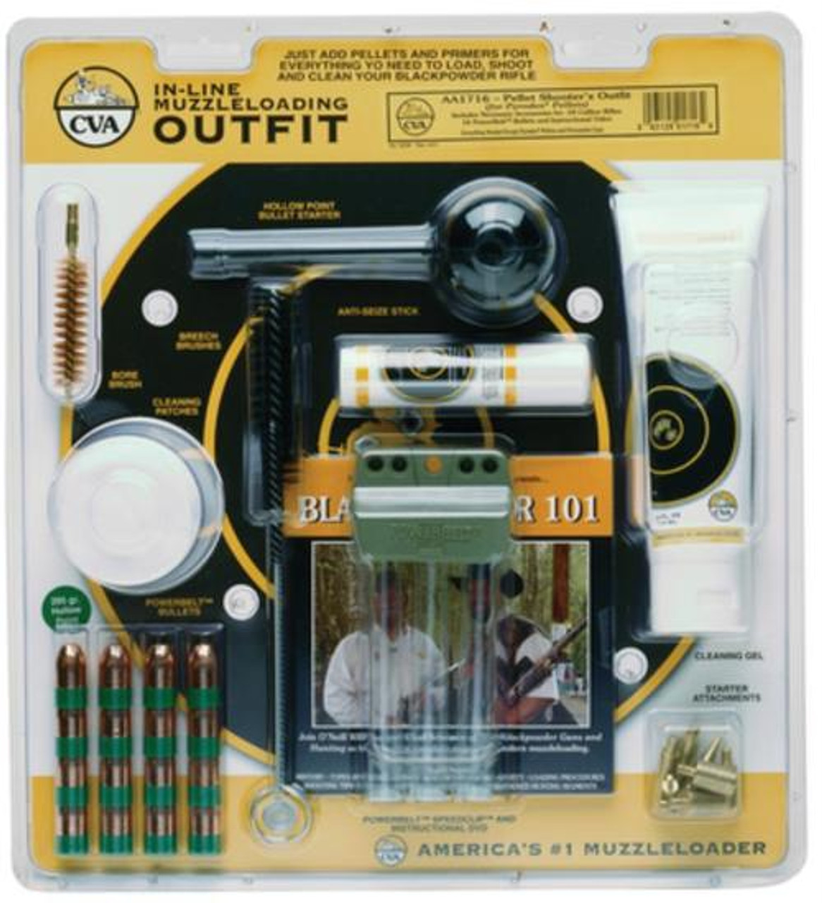 Includes top-of-the-line accessory items, plus the Blackpowder 101 instructional DVD to teach you how to use them. For the hunter who shoots pellet form powder or compressed powder. PowerBelt Bullets, PowerBelt SpeedClip Loader, Universal Hollow/Polymer Point Bullet Starter with loading tips, cleaning jag, cleaning patches, Barrel Blaster Wonder Gel solvent, breech plug grease stick, and a breech brush.