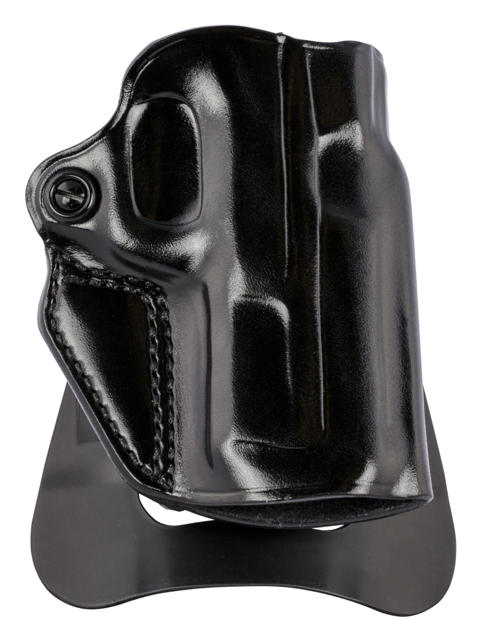 Featuring an open top design for speed, covered trigger for safety, and tension screw adjustment for added security, the highly versatile Speed Master 2.0 adds convenient on/off ability to the equation when set up as a paddle holster. As a huge bonus, the Speed Master 2.0 can also be configured as a solid and stable belt holster using the included belt slot attachment. It is constructed of premium saddle leather, and is compatible with belts up to 1.75″.