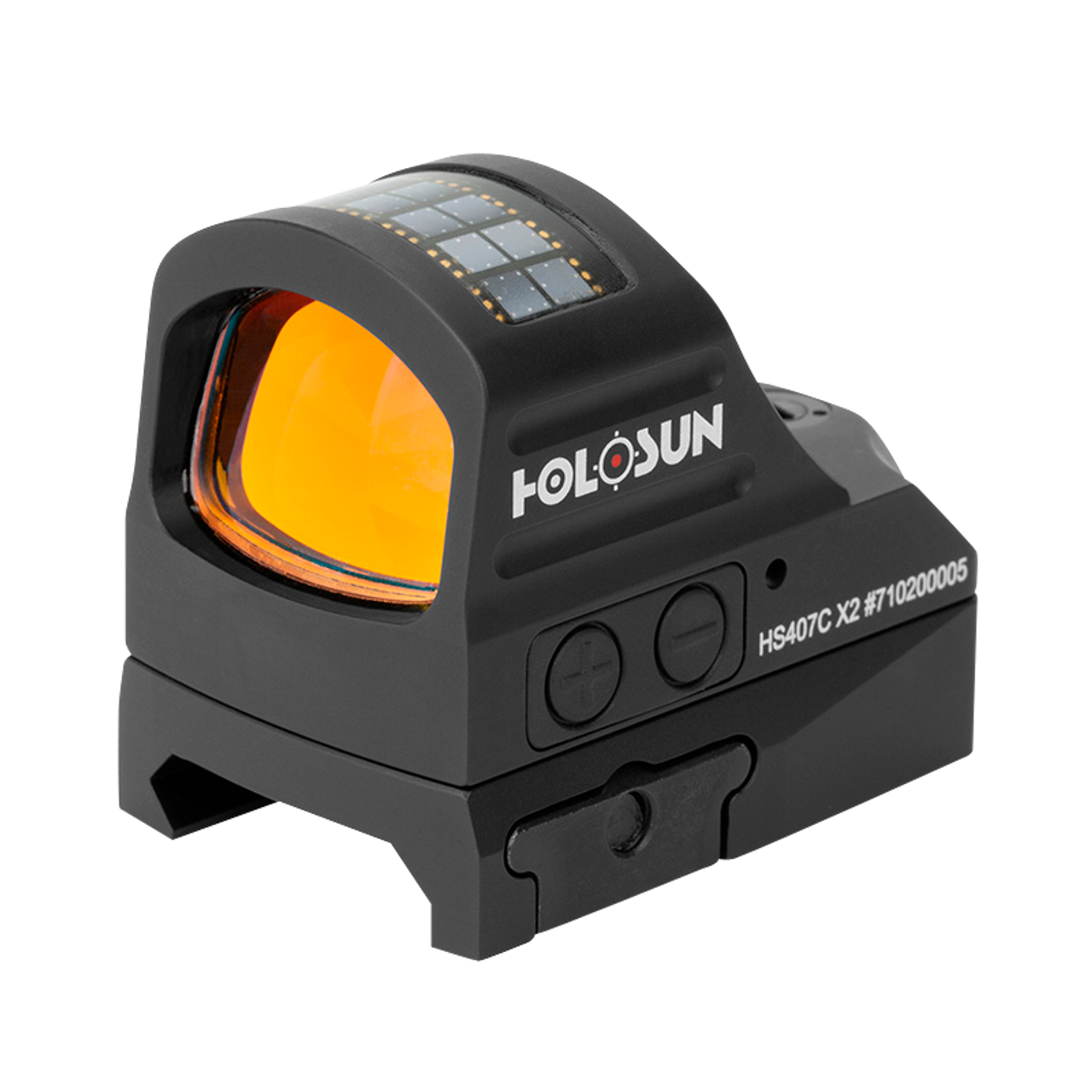 The HS407CO-X2 is an open reflex optical sight designed for pistol applications. Features include a 2MOA Open Circle, Holosuns Super LED with up to 50k hours battery life, Solar Failsafe, and Shake Awake.