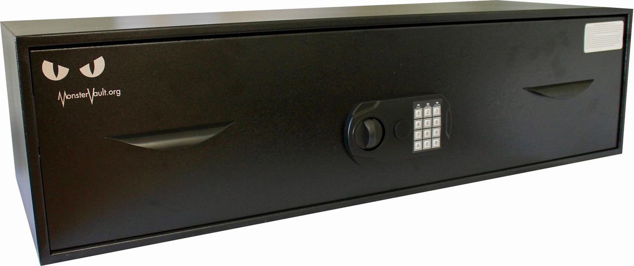 The Monster Vault Tactical Gun Safe is designed specifically for AR-type rifles. It is the ideal way to store your AR rifles and handguns conveniently where you can reach them. It was originally designed to meet the needs of SWAT trained officers driving Ford Explorers. Do you need quick access? The MonsterVault Tactical can be bolted under most common bed frames. It is as easy as reaching under your bed, putting in your programmable (3-8) digit combination and gaining quick access to your AR type rifles and handguns when you need them the most.