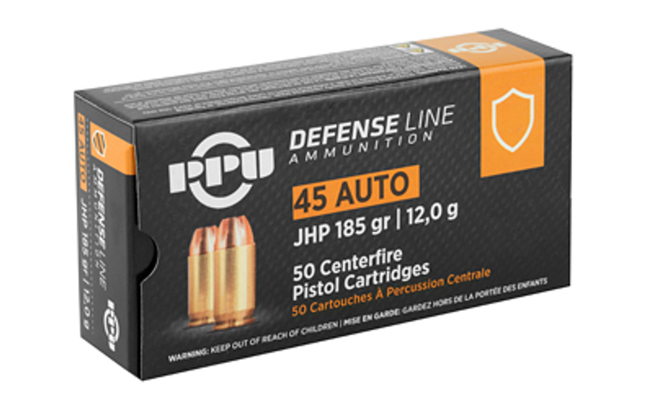 PPU Handgun Defense 45 ACP 185gr, Jacketed Hollow Point 50rd