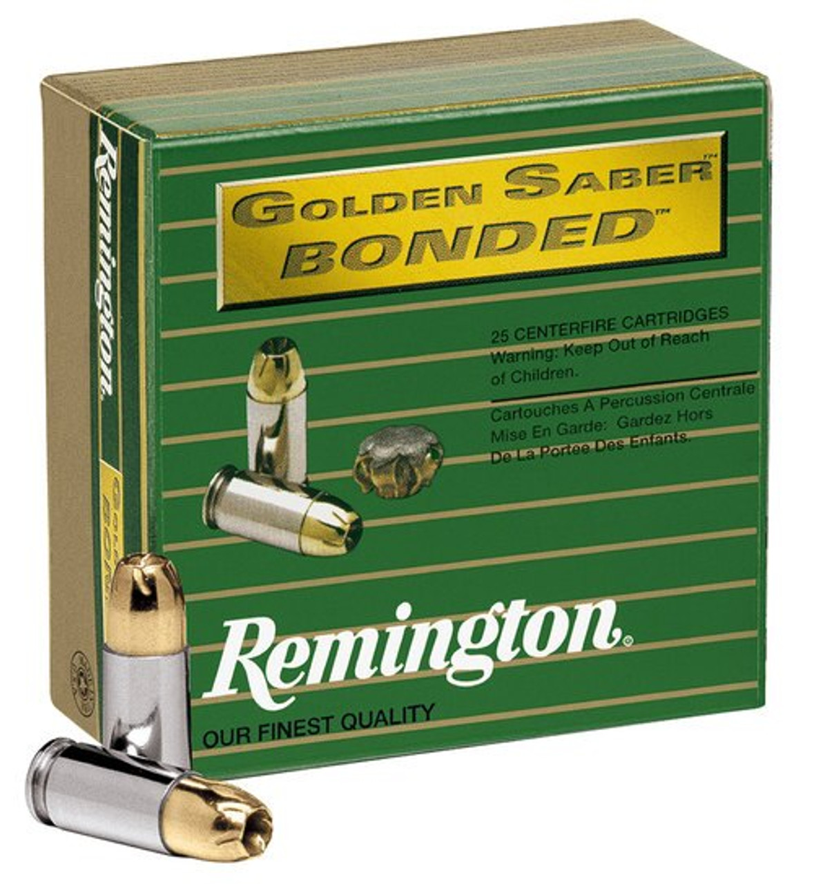 The Golden Saber Bonded features Remington’s special bonded-bullet design, bringing unmatched expansion, weight-retention, and barrier-blind performance. The lead core is hot-bonded to brass jacket, while the reduced bullet nose diameter is ideal for precise bore alignment and match-grade accuracy. Jacket stiffness and wall thickness optimized to eliminate over-expansion.