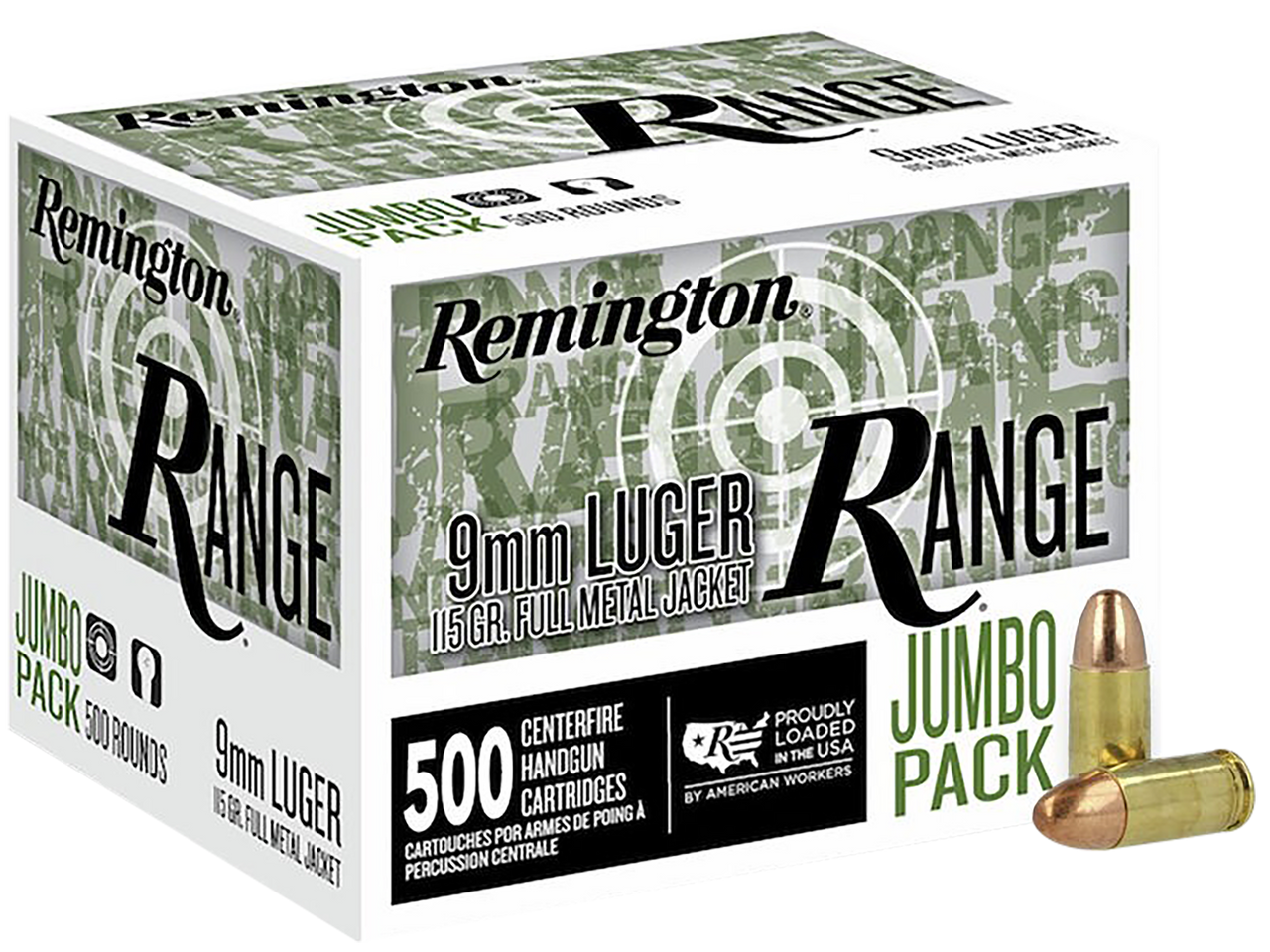 Remington Range Jumbo Pack 9mm, 115gr, Full Metal Jacket, 500rd Box