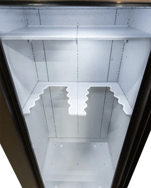 - Interior: Multi-Row Max Gun + 2 Shelves, Single Horseshoe + 4 Shelves, Standard Double Horseshoe + 2 Shelves