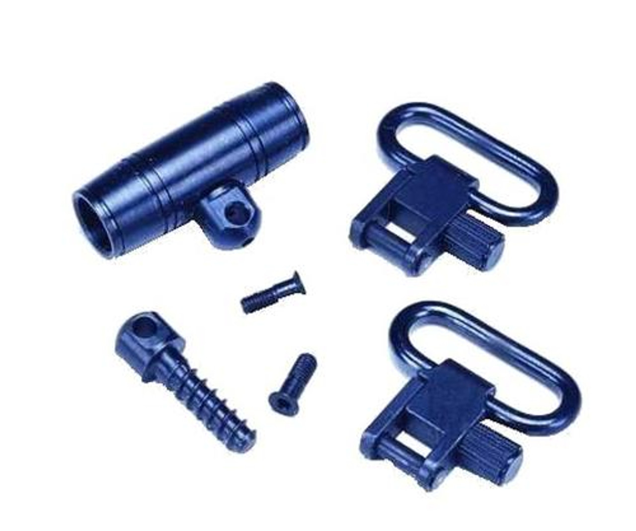 All the components necessary to use a sling on your favorite traditional T/C muzzleloader; cap-lock or flint-lock. Comprised of two Q.D. Sling Swivels, buttstock stud screw and ramrod thimble stud. Available with brass or blued thimble.