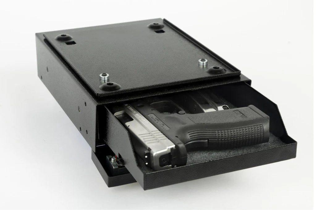 V-Line Desk Mate Pistol Safe 2597-S is designed to be mounted under a cabinet, desk, or shelf. You can easily and quickly open this safe with a reliable combination lock. It is 100% mechanical which means you never have to worry about batteries or losing a key. There are 5 buttons and 1081 possible combinations which means it will be very hard for someone to “guess” your combination. You can set a custom combination yourself at any time for peace of mind.