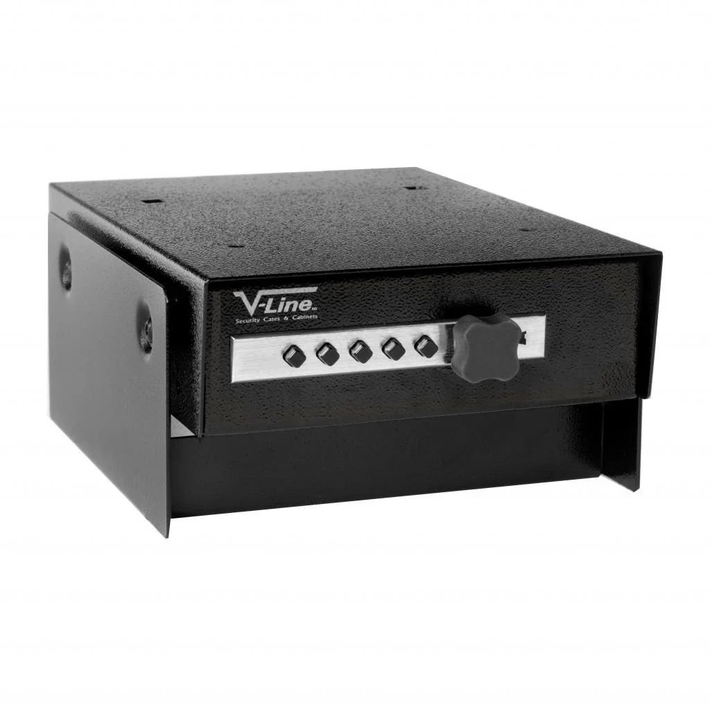 The V-Line Desk Mate Pistol Safe 2597-S is a compact, under-desk handgun safe designed for quick access and discreet storage. Its mechanical lock eliminates the need for keys or batteries, making it a reliable choice for secure firearm storage in home or office environments.